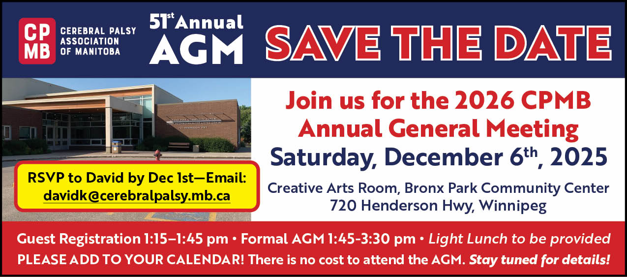 The Cerebral Palsy Association of Manitoba holds several events throughout the year. Information on upcoming events